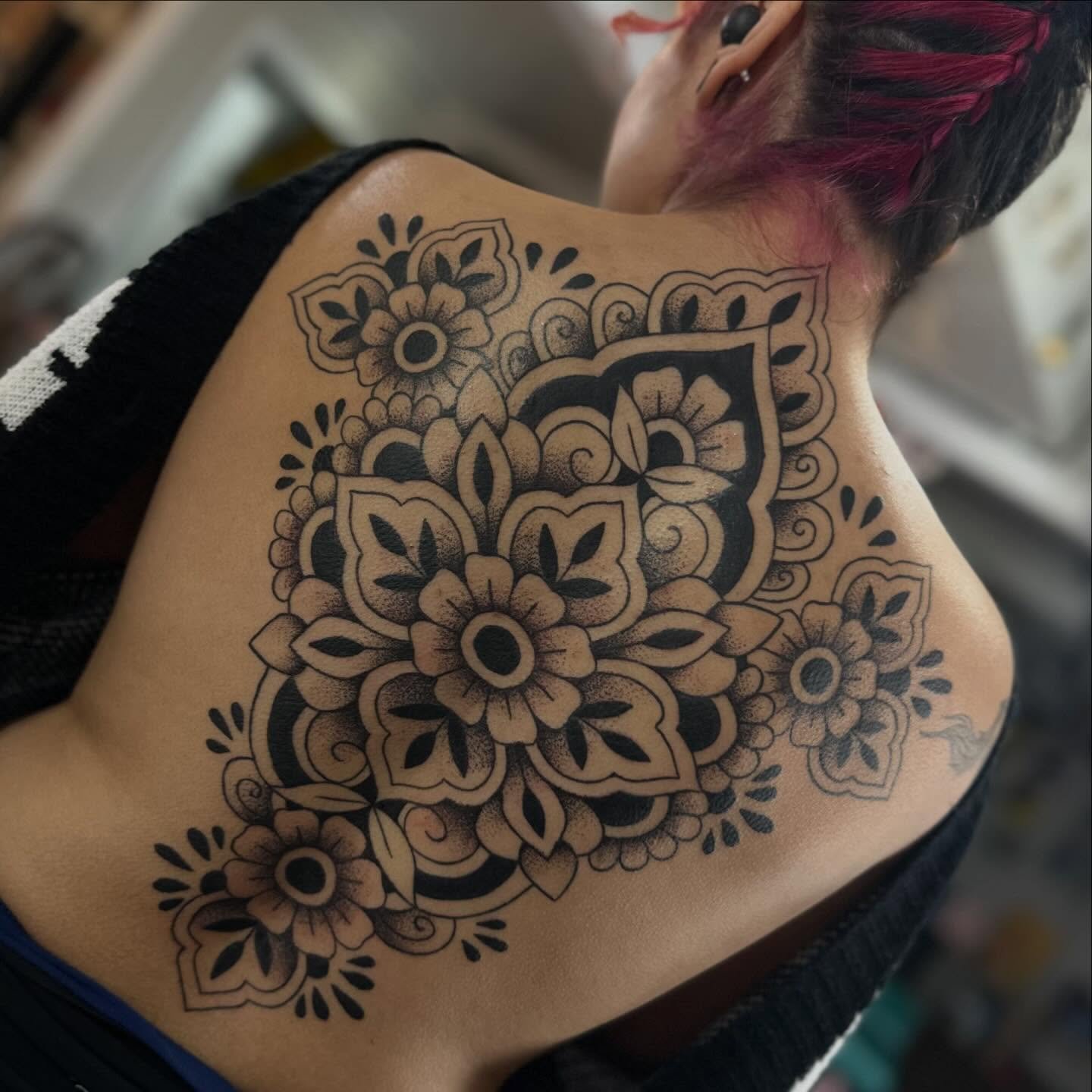 #ladytattooer #tattoo #amarillotx #womenownedbusiness #floral #floraltattoo #blackwork #blackworkt