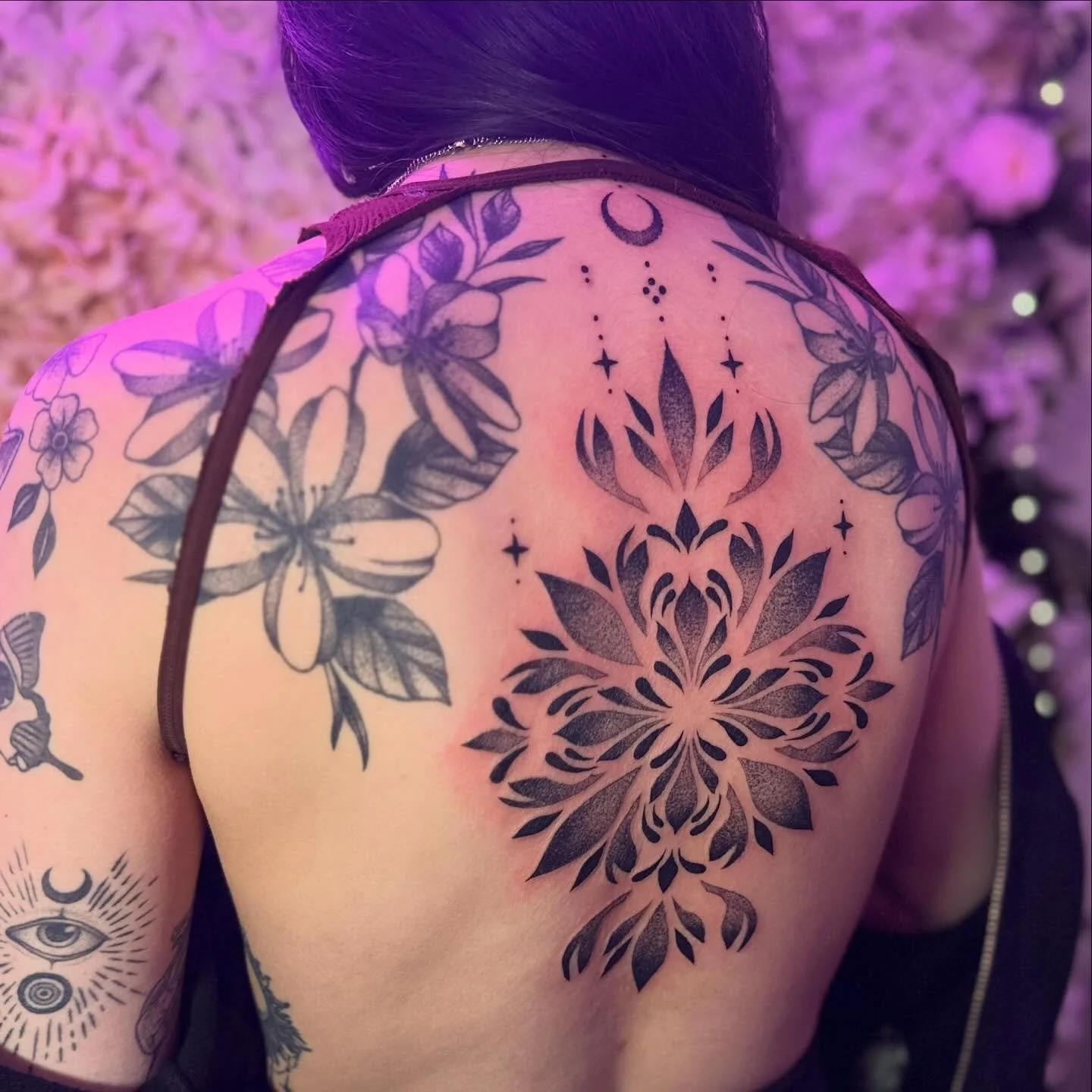 #ladytattooer #tattoo #amarillotx #womenownedbusiness #blackwork #blackworktattoo #dotwork #whipshadi